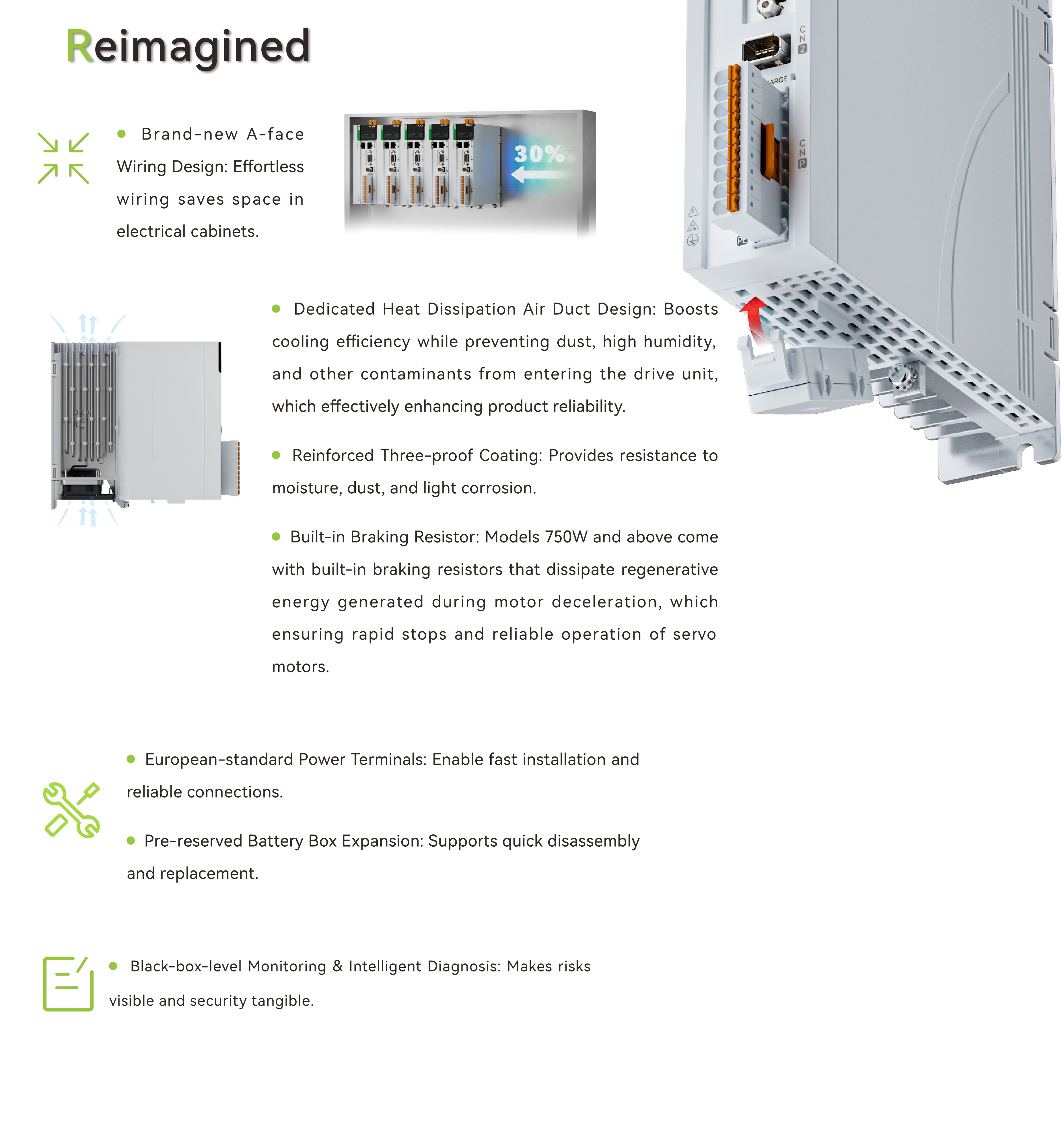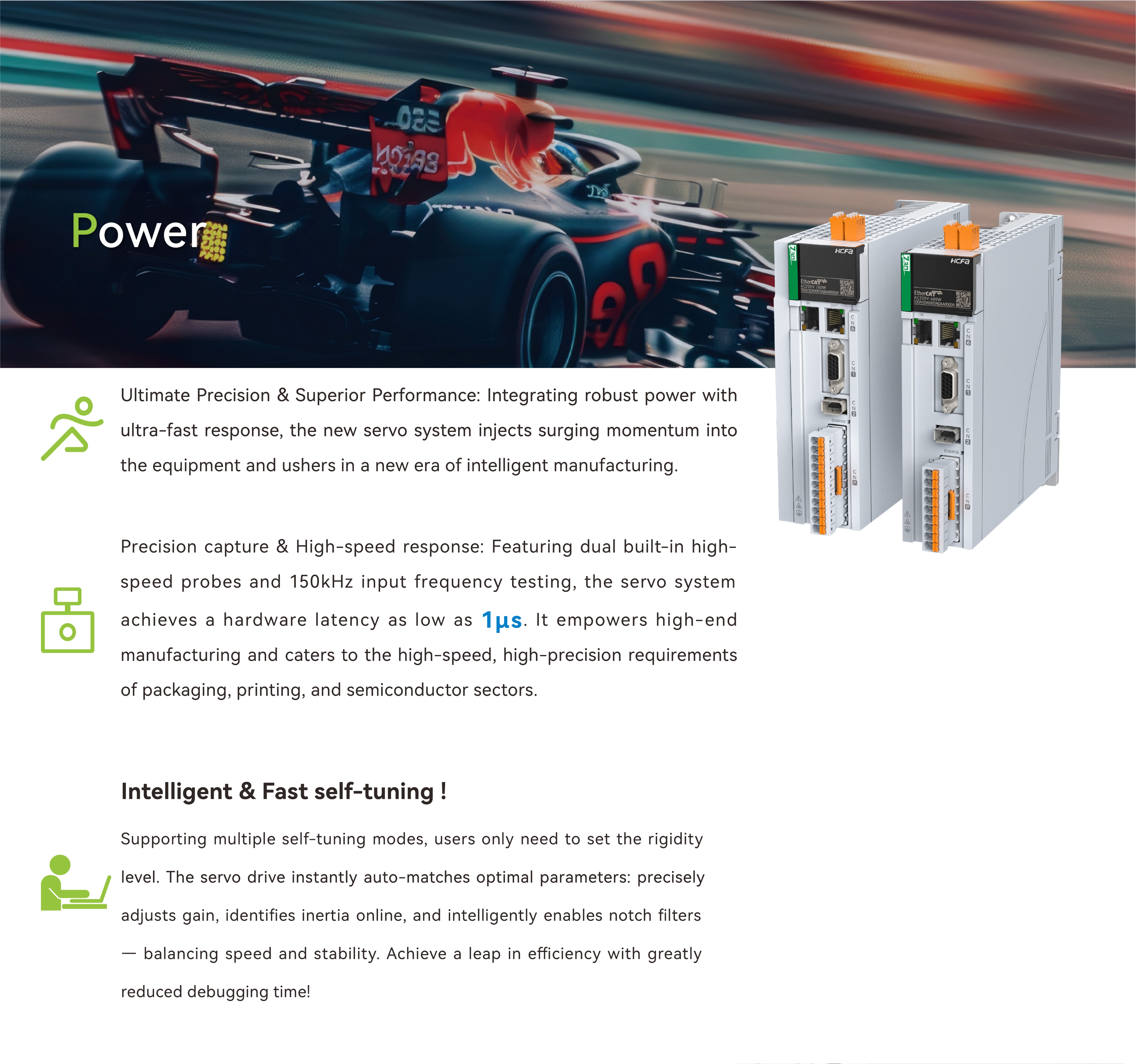 The SV730 universal single-axis servo drive, while inheriting the design language of the 7-series family, meets users\' demands for higher response and precision in servo systems. It supports pulse and EtherCAT bus communication control, making it suitable for high-end applications such as laser, photovoltaics, and lithium batteries.