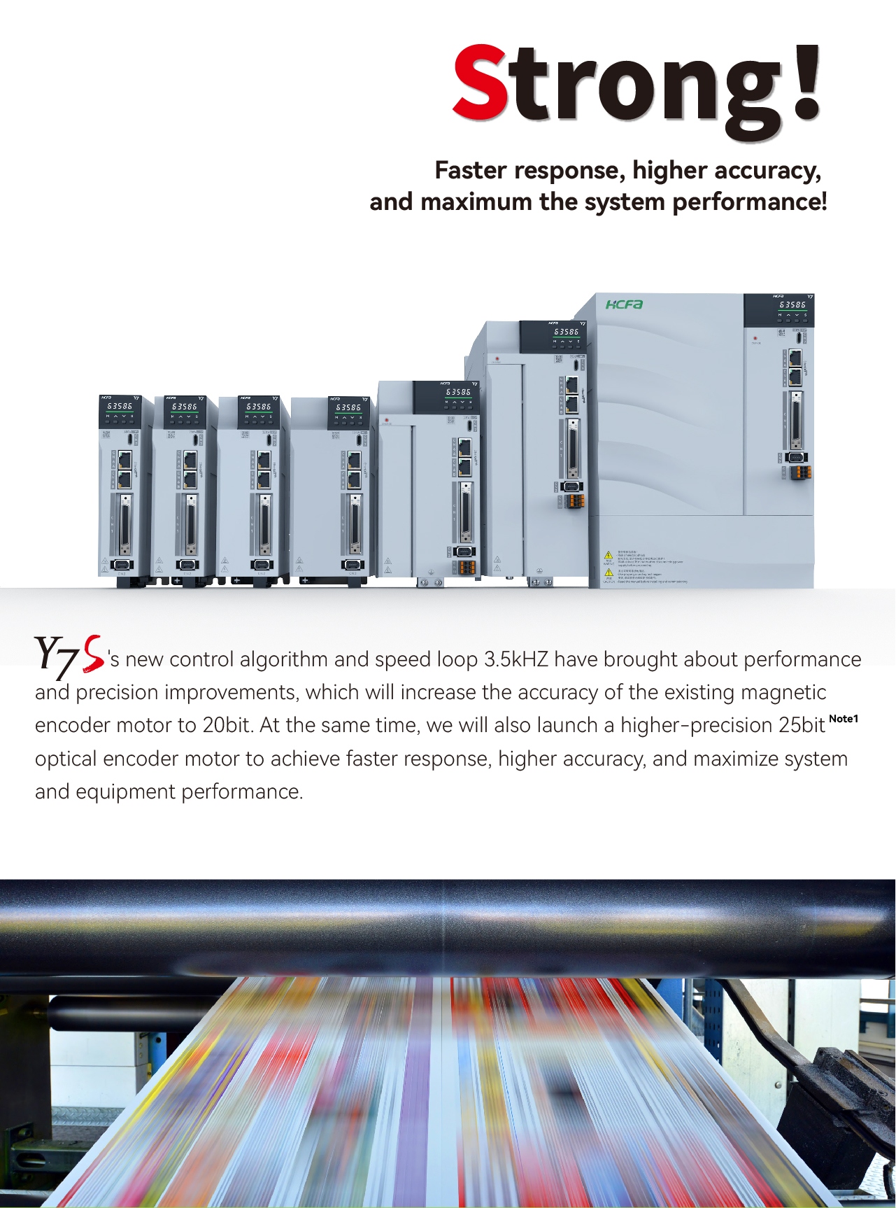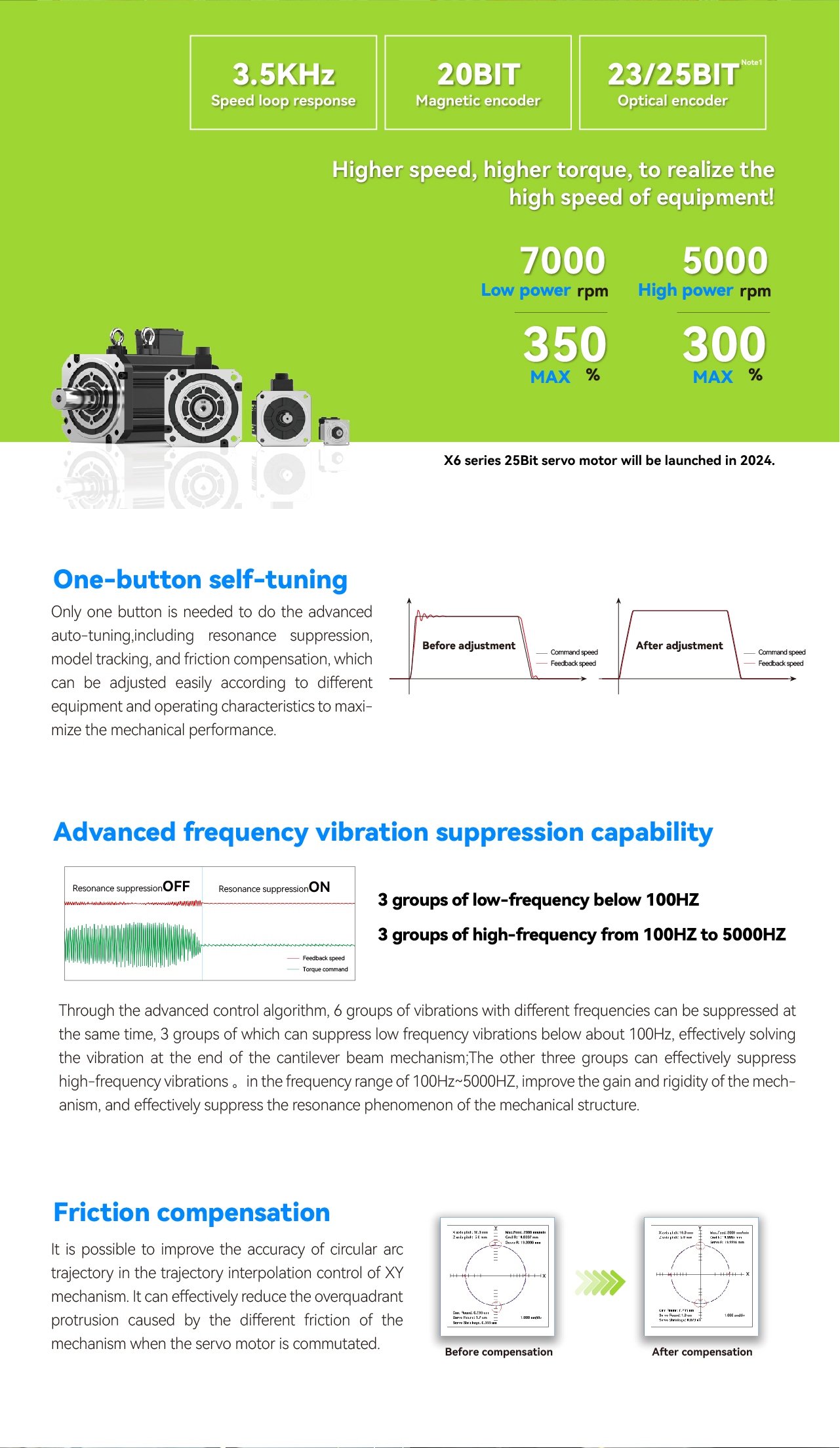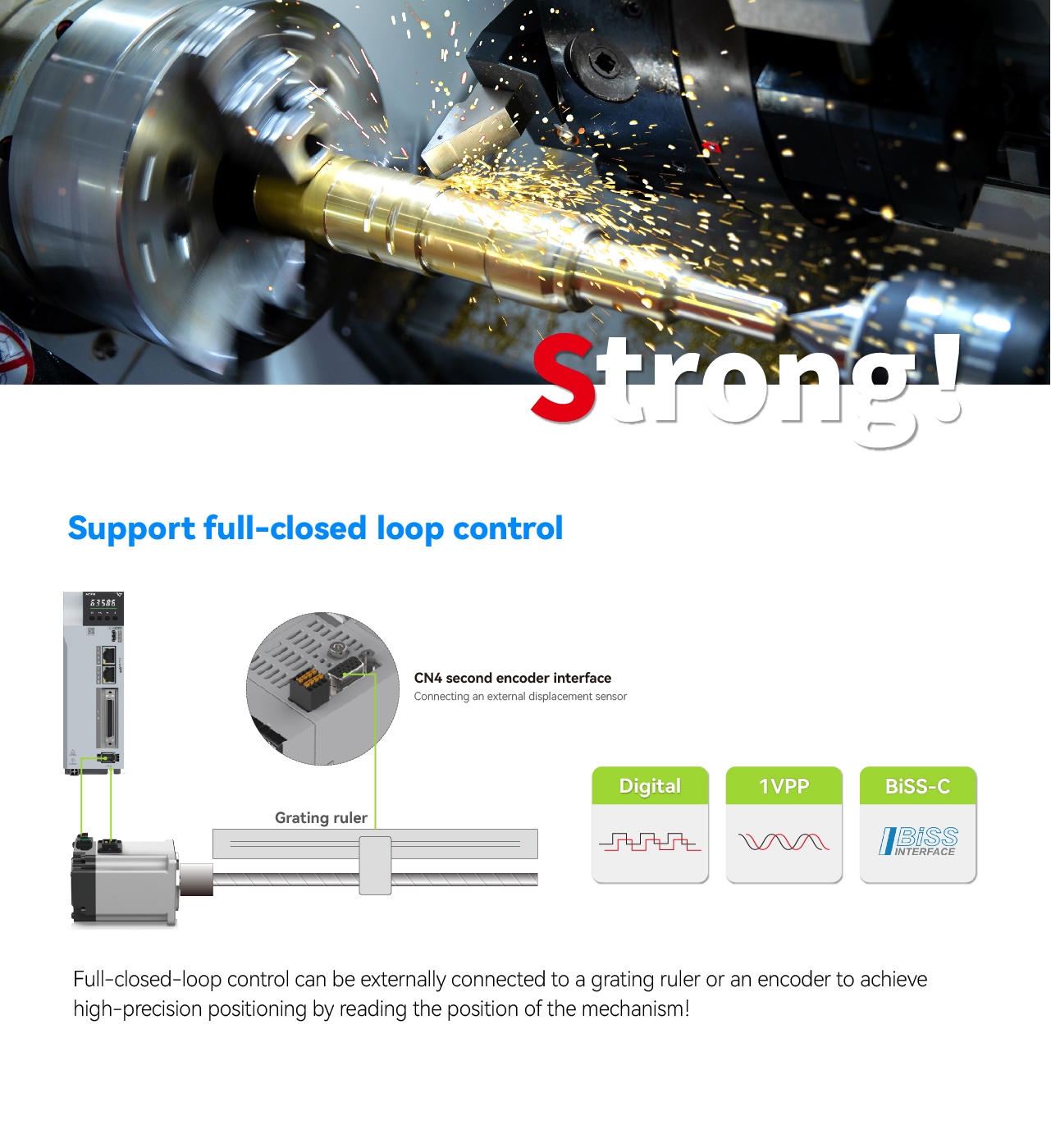 The new generation Y7S high-end servo system, designed with a 5S concept, supports a rich variety of buses and covers multiple power ranges, achieving higher speeds and torques. It is agile and flexible in responding to market changes, meeting the high-performance industry demands of the general market!