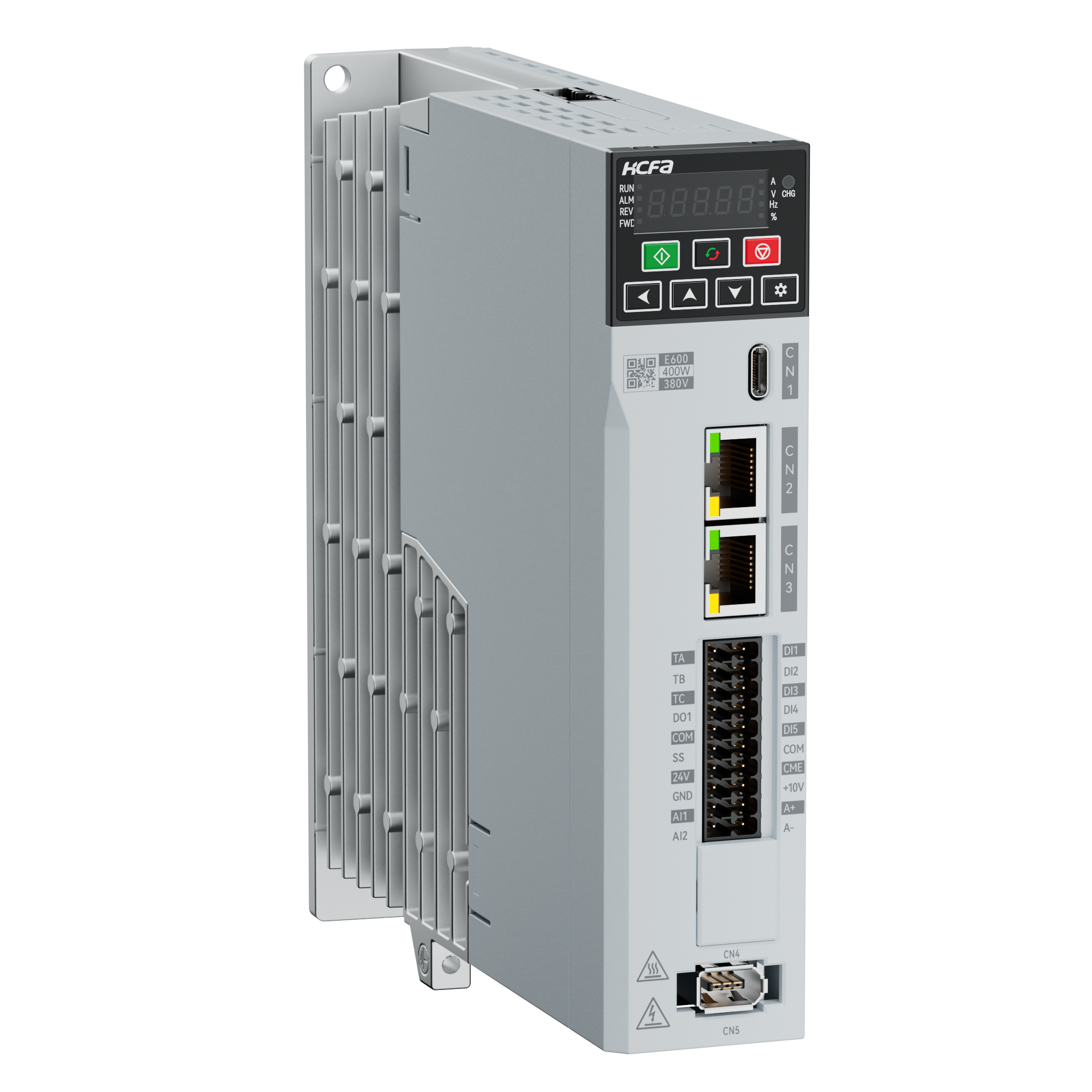 The HDv-E600 series frequency converters are positioned as economical low-power frequency converters, covering a power range from 0.4 to 7.5 kW. They feature built-in Modbus communication, come standard with digital input/output and analog input across the entire series, and offer precise fault protection functions.