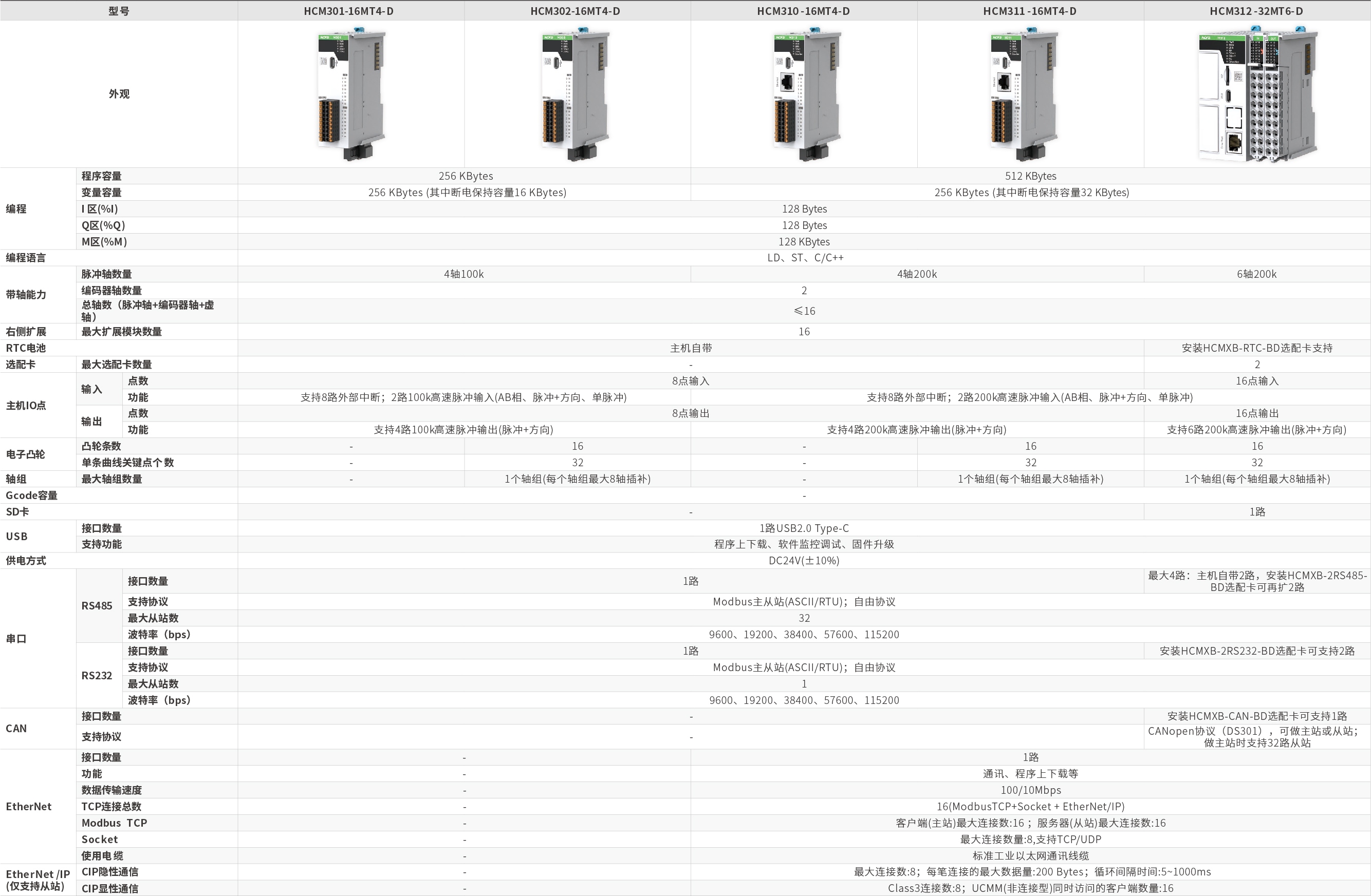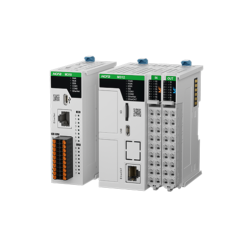 The M300 series is a basic motion control controller with a slim and lightweight body, featuring a minimum width of just 3cm, making it suitable for applications where space is at a premium. Some models come with built-in Ethernet ports, and the entire series supports serial communication. The M300 series can achieve 4-6 axis pulse output and 2-channel high-speed pulse input. The right side of the M300 series can accommodate up to 16 expansion modules, including the M312, which can expand two BD cards. It supports functions such as single-axis position/velocity, electronic gear/electronic cam/axis group/interpolation (linear, circular, spiral).
