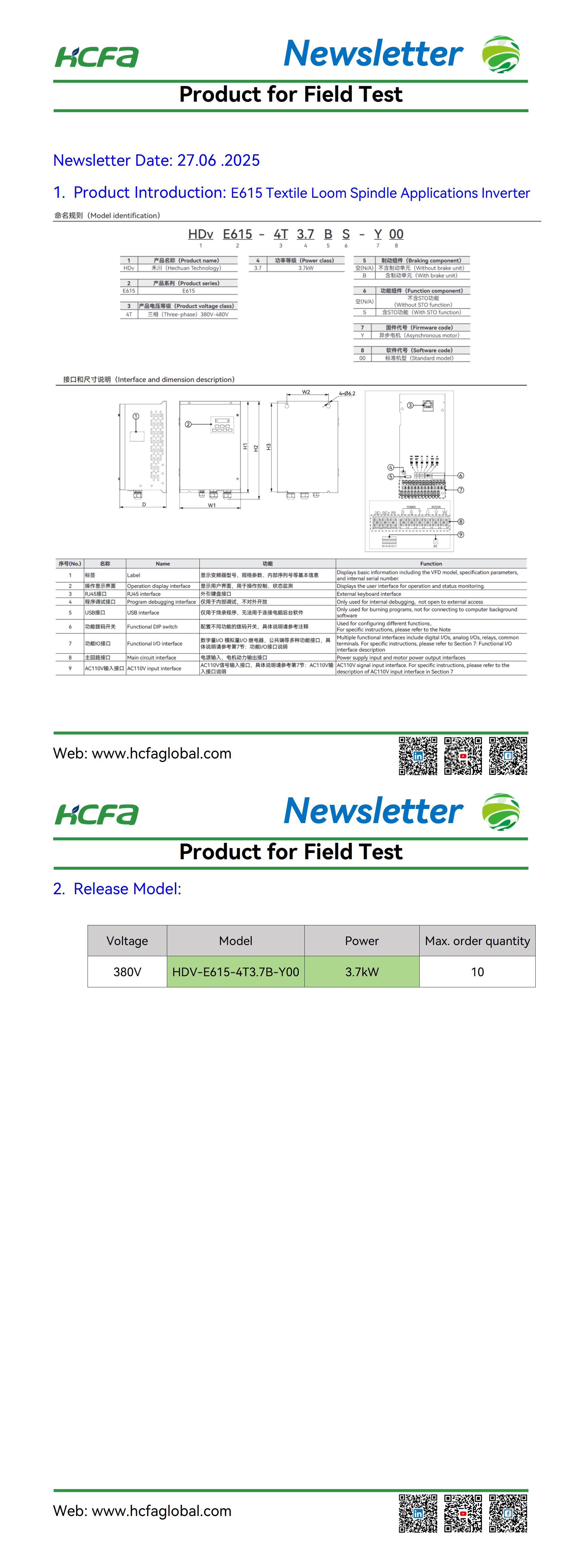 Product for Field Test_E615 Textile Loom Spindle Applications Inverter